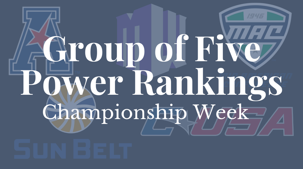It’s here. Conference titles are on the line this weekend as coaching changes and bowl game announcements swirl around to ensure attention stays on college football outside the championship fights. Oh, and Buffalo-Akron and New Mexico State-Valparaiso, just for fun. With the big battles staring us in the face, here’s this week’s Group of 5 rankings, plus conference championship game predictions below.
